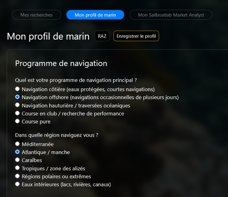 The Premium account allows you to edit your sailor profile, which will condition the analysis of boat ads.