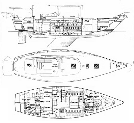 The Contest 48 is a heavy sailboat which is slightly under powered. It is reasonably stable / stiff and has an excellent righting capability if capsized. It is best suited as a heavy bluewater cruising boat. The fuel capacity is excellent. There is an excellent water supply range.
