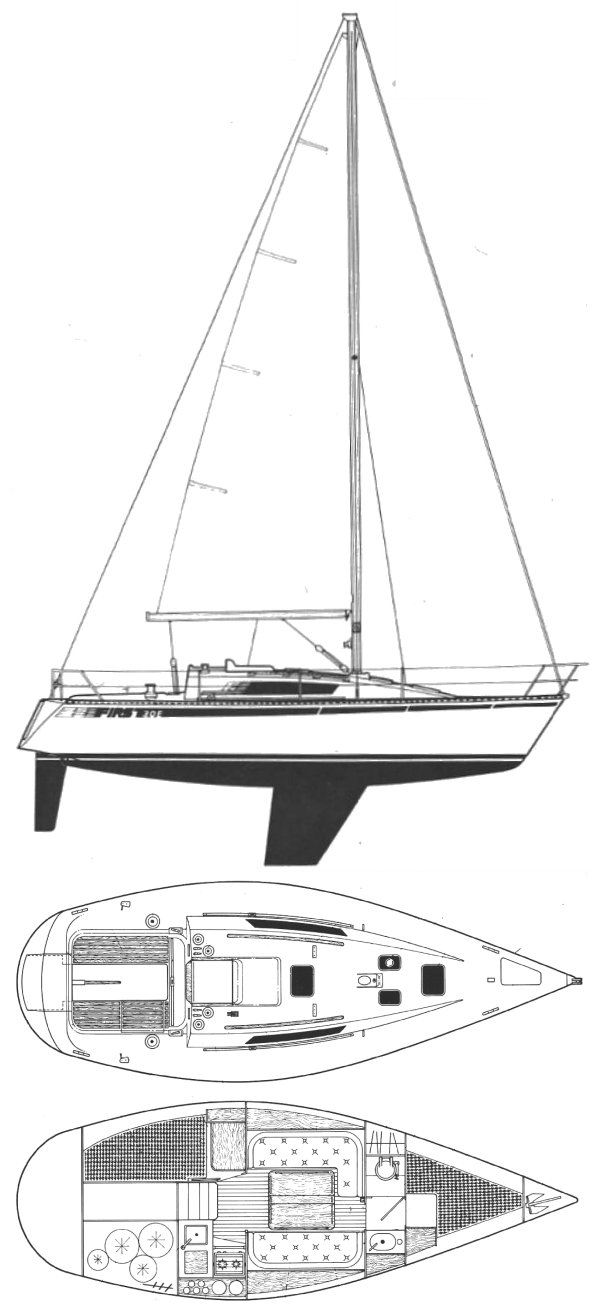 The First 30 e Beneteau Berret is a light sailboat which is a reasonably good performer. It is very stable / stiff and has a low righting capability if capsized. It is best suited as a day-boat. The fuel capacity is originally very small. There is a very short water supply range.