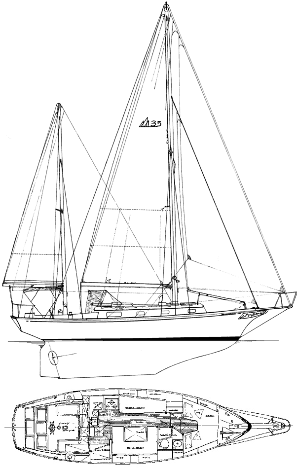 The Fuji 35 is a 34.58ft staysail ketch designed by John G. Alden Inc. and built in fiberglass by Fuji Yacht Builders Ltd. (JAP) between 1973 and 1982.