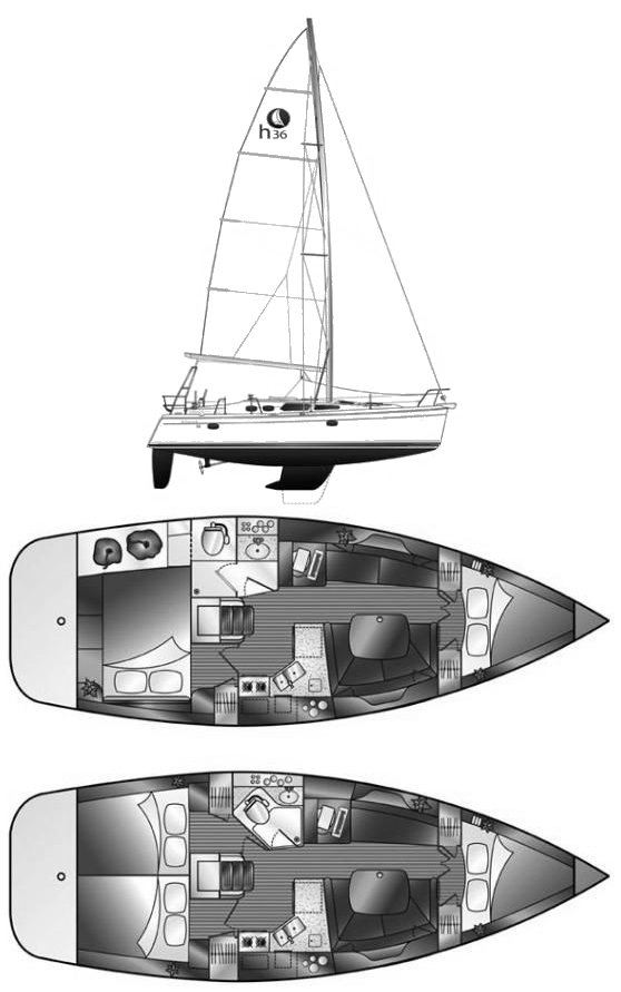 The Hunter 36 2 is a moderate weight sailboat which is a high performer. It is stable / stiff and has a low righting capability if capsized. It is best suited as a fast cruiser. The fuel capacity is originally small. There is a short water supply range.