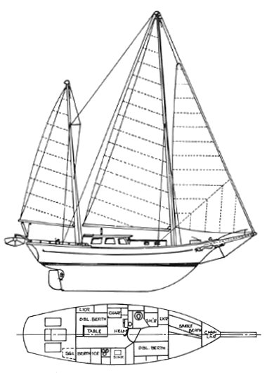The Island trader 41 is a 40.26ft staysail ketch designed by William Garden and built in fiberglass since 1976.