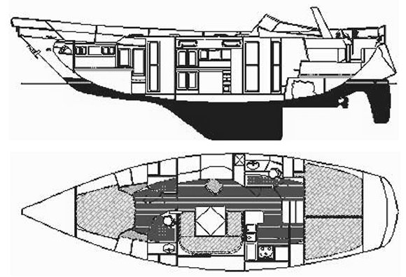 The Malo 42 is a heavy sailboat which is slightly under powered. It is stable / stiff and has an excellent righting capability if capsized. It is best suited as a heavy bluewater cruising boat. The fuel capacity is average. There is an excellent water supply range.