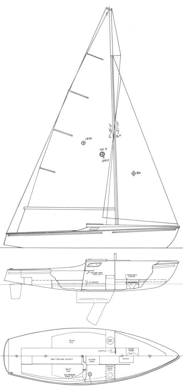 The Mustang 22 is a 22.0ft fractional sloop designed by Martin Bludworth and built in fiberglass by Plastrend / Composite Technologies since 1969.