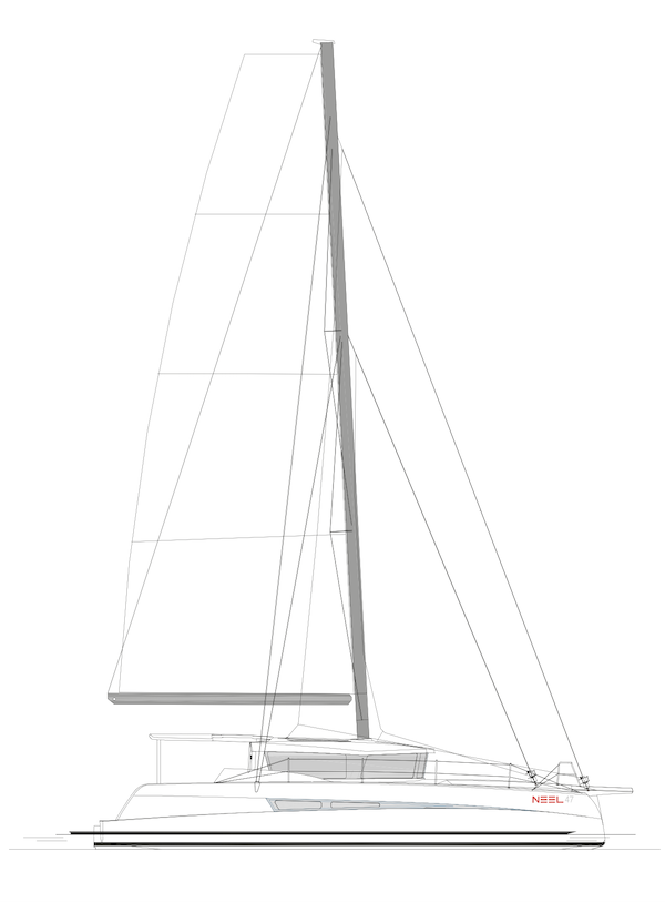 The Neel 47 is a 47.0ft fractional sloop designed by Marc Lombard and built in fiberglass by Neel Trimarans since 2019.