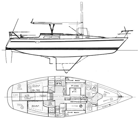 The O'day 39 is a moderate weight sailboat which is slightly under powered. It is stable / stiff and has a good righting capability if capsized. It is best suited as a coastal cruiser. The fuel capacity is originally small. There is a good water supply range.