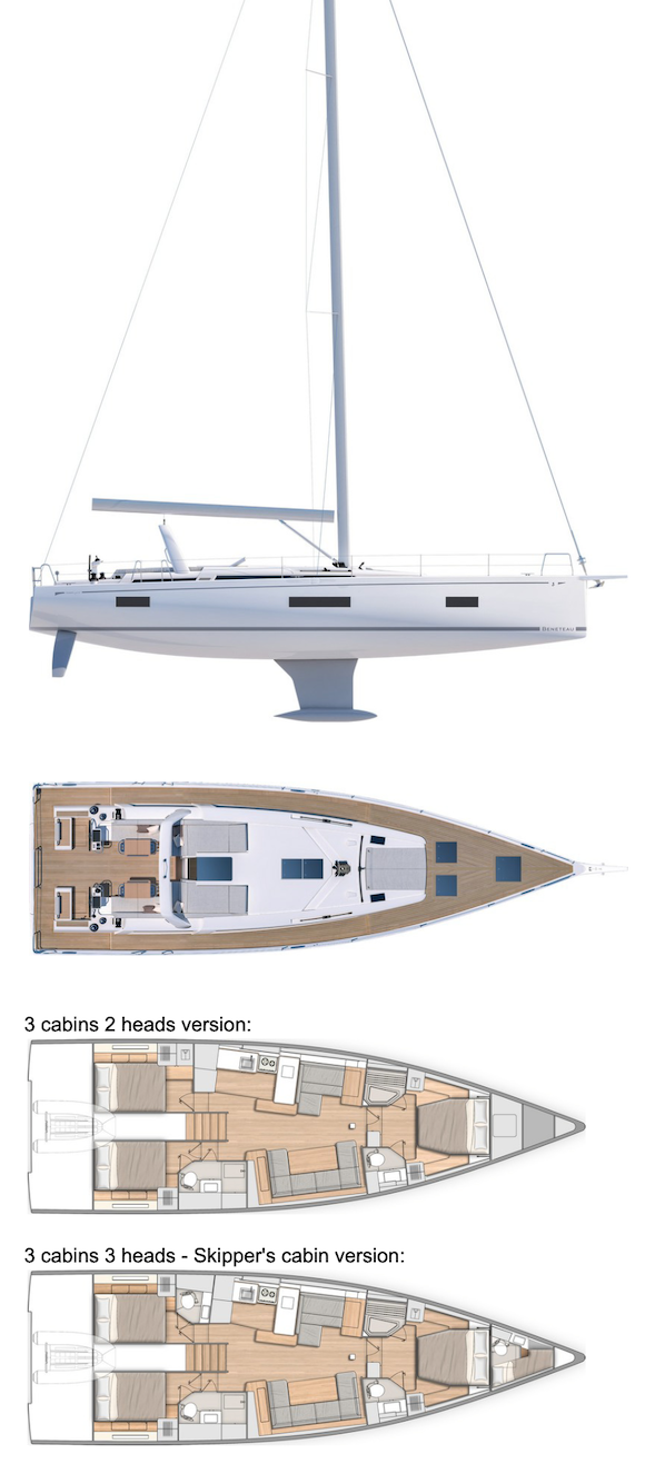 The Oceanis yacht 54 Beneteau is a 56.17ft fractional sloop designed by Biscontini Yacht Design and built in fiberglass by Beneteau since 2020.