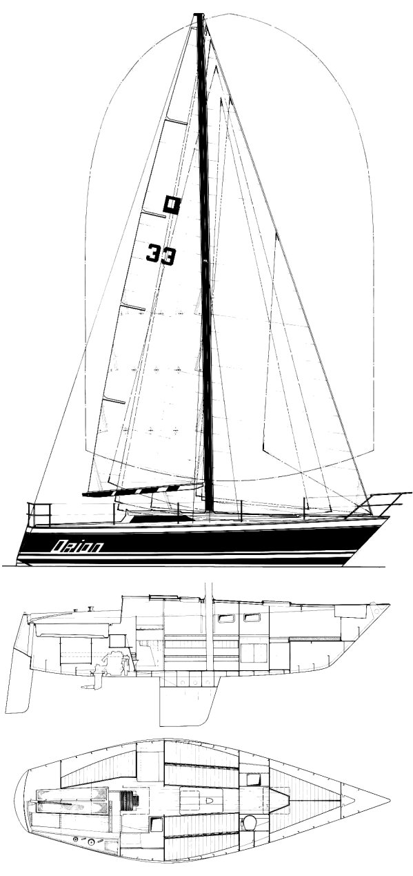 The Orion 33 is a moderate weight sailboat which is a reasonably good performer. It is very stable / stiff and has a good righting capability if capsized. It is best suited as a coastal cruiser.
