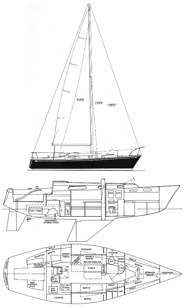 The Pearson 10m is a 33.04ft masthead sloop designed by William Shaw and built in fiberglass by Pearson Yachts between 1973 and 1981.
