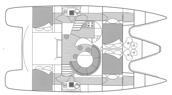 The Privilege 435 is a 43.0ft frac. sloop (rotating spar) designed by Marc Lombard and built in fiberglass by Privilège catamarans between 1999 and 2004.