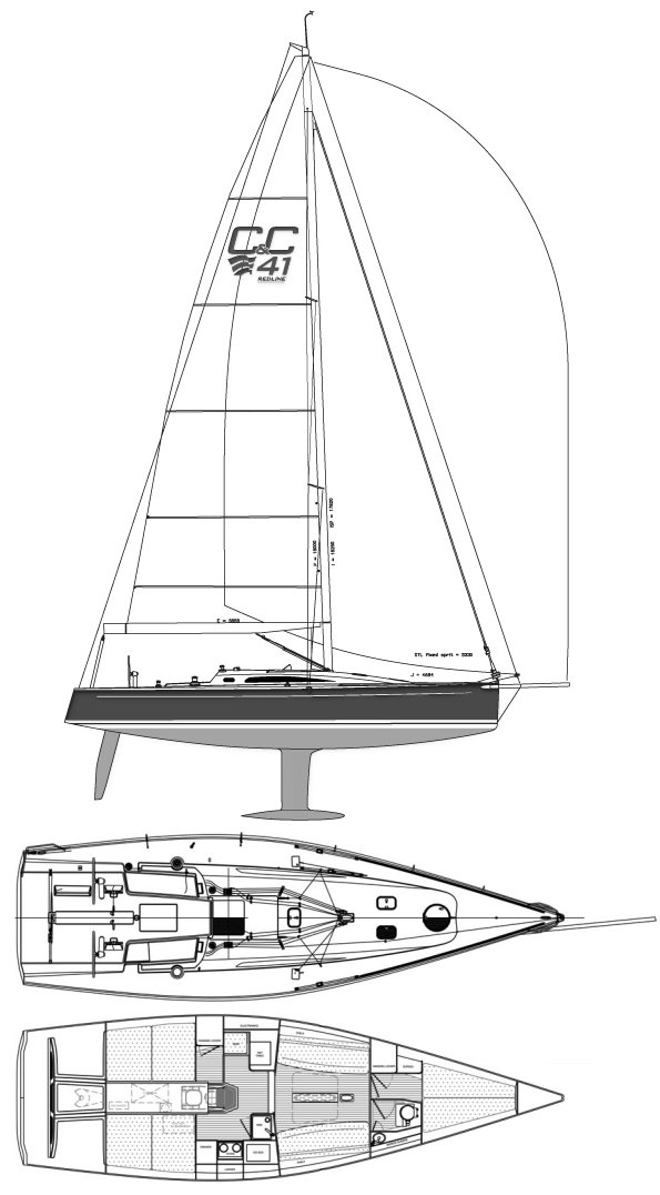 The Redline 41 2014 is a 40.7ft fractional sloop designed by Mark Mills. and built in fiberglass sandwich - infused pvc foam by C&C Yachts since 2014.