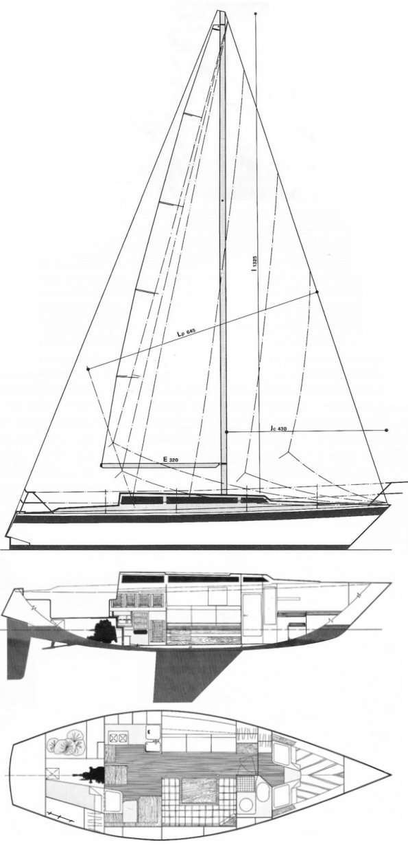 The Show 34 is a moderate weight sailboat which is a good performer. It is very stable / stiff and has a good righting capability if capsized. It is best suited as a coastal cruiser. The fuel capacity is originally very small. There is a short water supply range.
