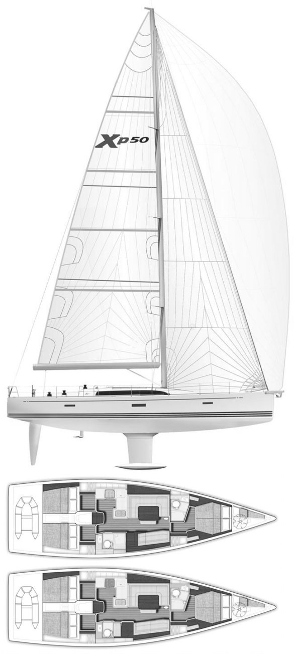 The Xp 50 is a light sailboat which is a very high performer. It is very stable / stiff and has a good righting capability if capsized. It is best suited as a fast cruiser. The fuel capacity is average. There is a good water supply range.