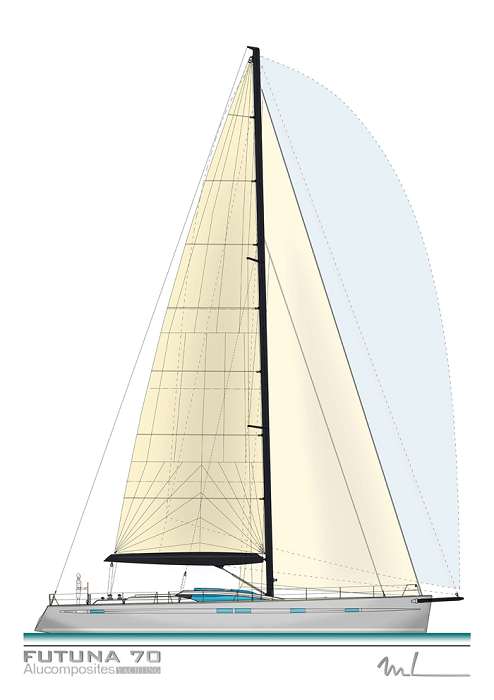 The Futuna 70 is a 71.36ft masthead sloop designed by Marc Lombard and built in aluminum hull and composite deck by Futuna Yachts (Alucomposites) since 2010.